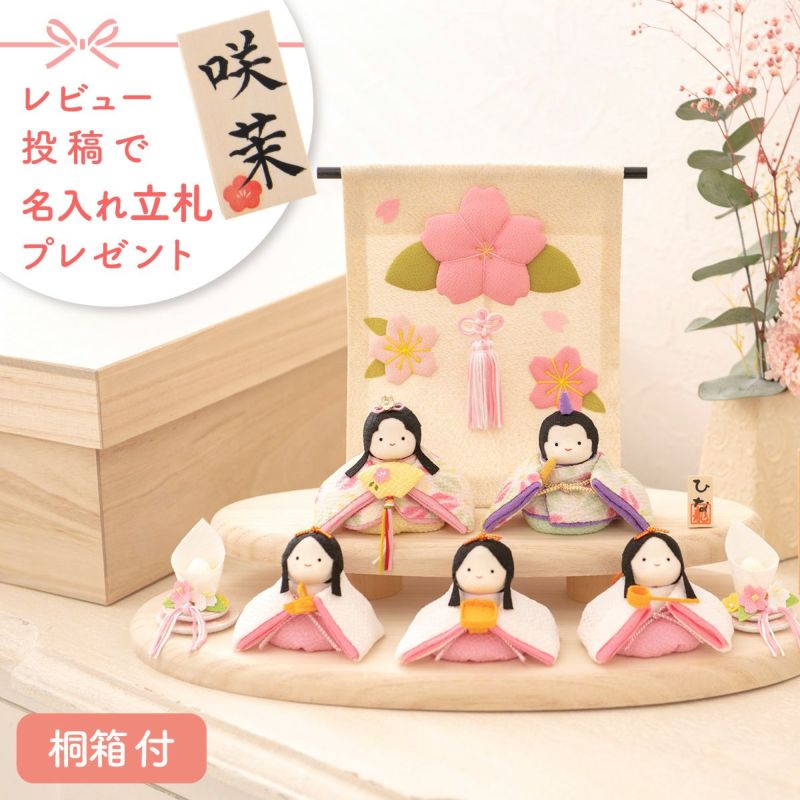 女の子のお祝い「初節句 桃の節句 ひな祭り」おんなの子の健やかな成長を願ってお雛様を贈ります。収納ケースに自分で片づけをし、かわいいお雛様を大切にする心も育みます。プレゼント、ギフト、ディスプレイやインテリアにも最適なコンパクトサイズでマンションや玄関飾りとしても人気の節句飾りです。