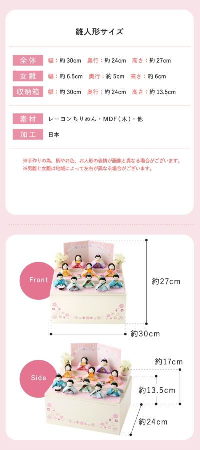 雛人形サイズ(cm):全体-幅30×奥行24×高さ27cm,女雛-幅約6.5/高さ6