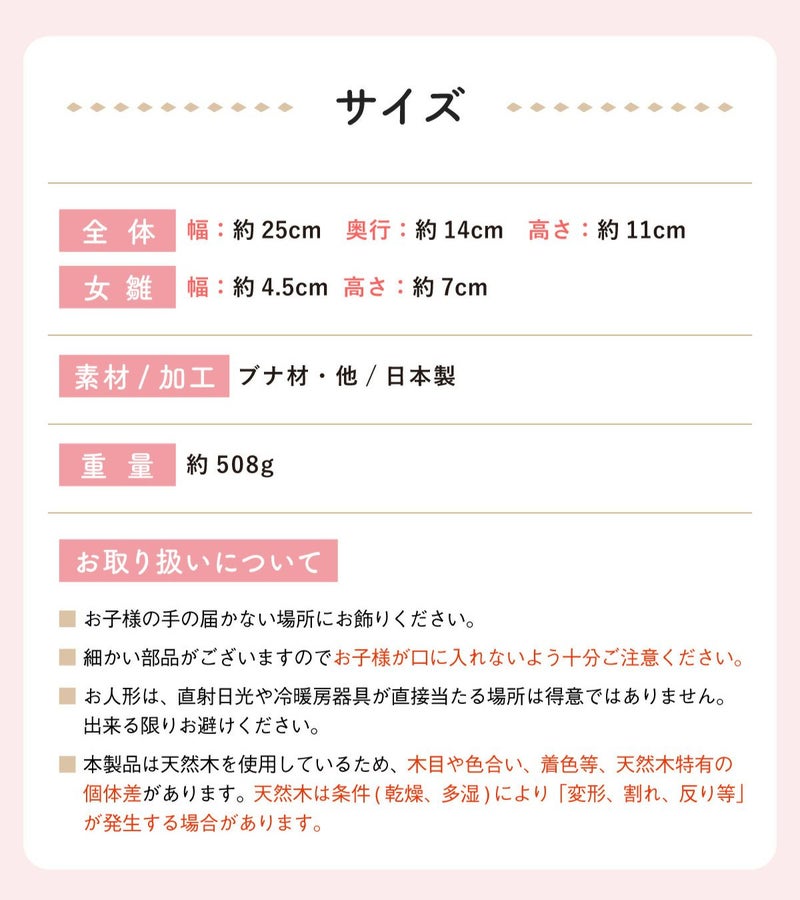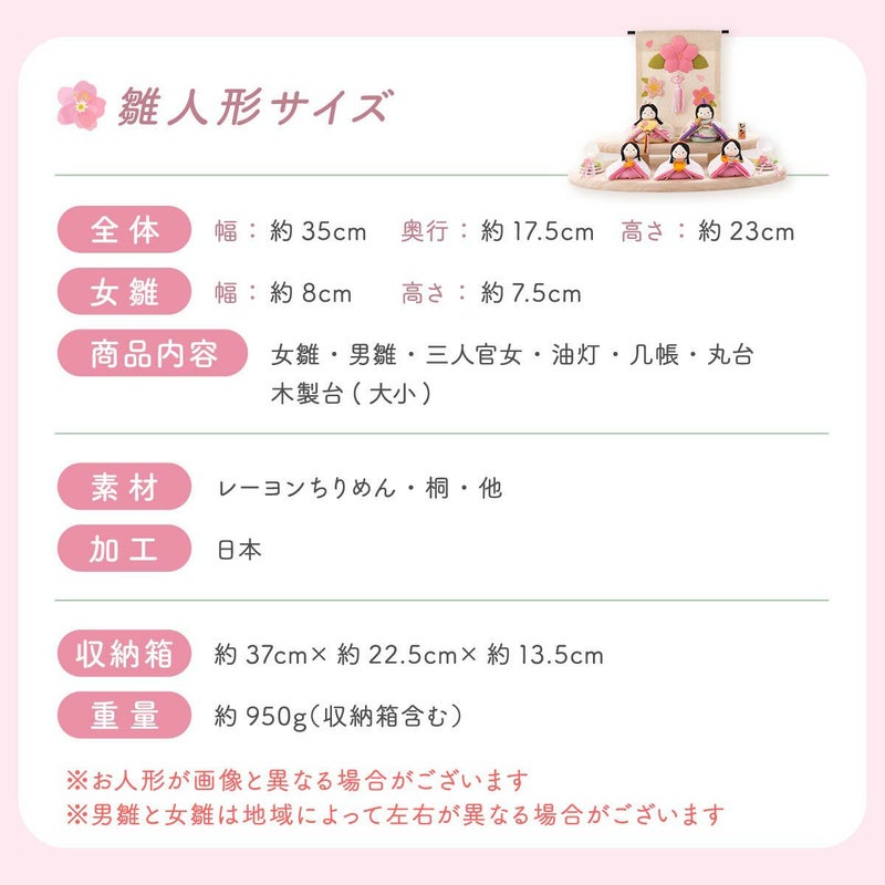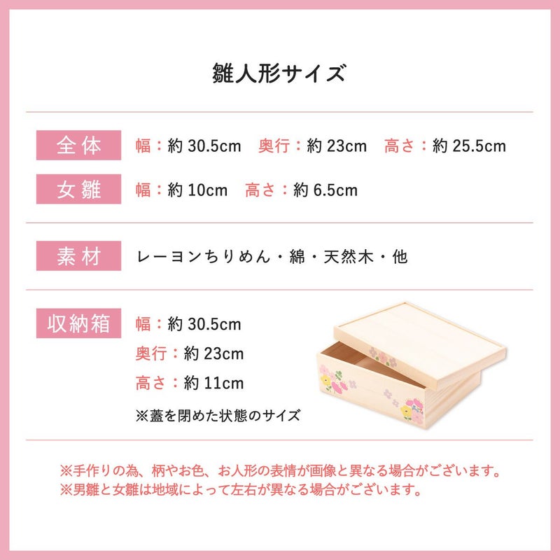 他の画像を見る 販売価格 ¥ 37,750 税込 詳細を見る お気に入りに登録する 送料無料 おしゃれなひな人形 ちりめん 30cmスペースで飾れる! 龍虎堂 雛人形 コンパクト ケース飾り おしゃれ かわいい お雛様 箱段お飾りセット※ケース付き2/19発送予定 在庫切れ