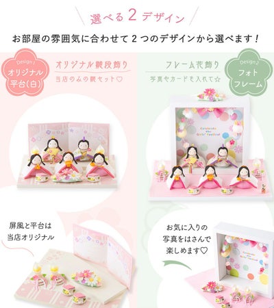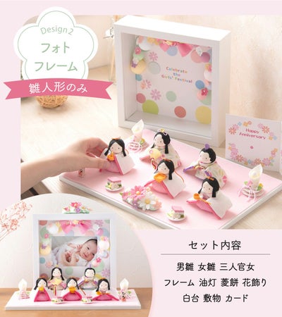 ・フォトフレームデザイン-写真と一緒に楽しむひなまつり。お子様がすくすくと成長していく姿はご家族にとっても宝物。毎年写真を変えてアレンジしたりしてあなただけの雛飾りを楽しめます。