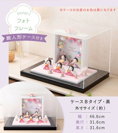 雛人形サイズ(cm):オリジナル平台デザイン-全体-幅25×奥行22×高さ11cm(台+フレームの高さ),フォトフレームデザイン-全体-幅34×奥行24×高さ23.5cm(台+フレームの高さ)