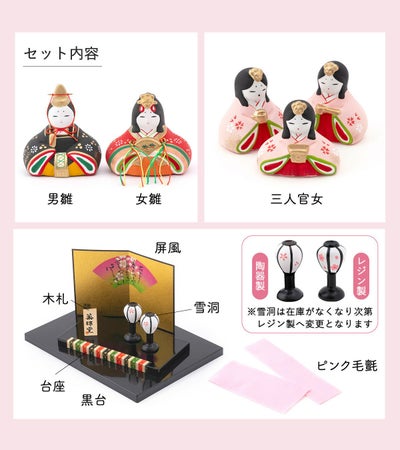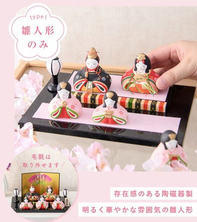 雛人形 コンパクト かわいい 錦彩華みやび雛 五人飾り 陶器 薬師窯 桐箱 ピンク毛氈付
