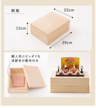 ※お人形に付属の保管箱は、厚手の紙製の箱となります。木製ではございません。ご了承くださいませ。
