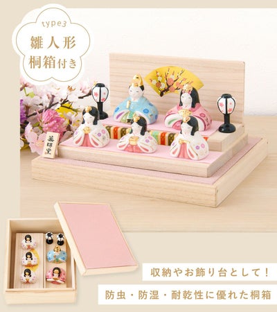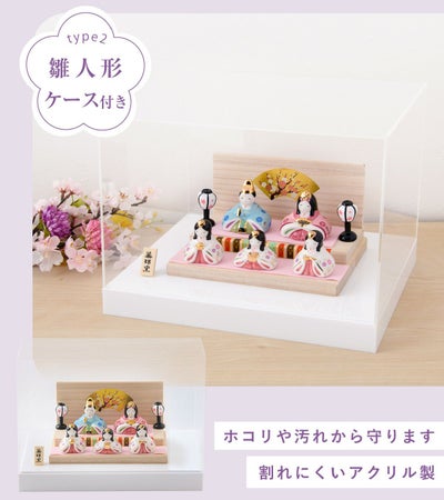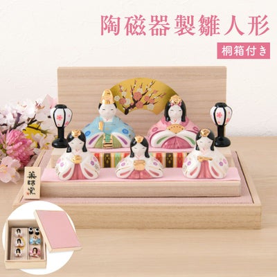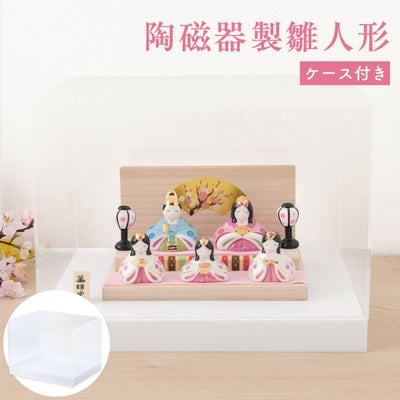 ◆雛人形 コンパクト モダン 新作 2025年 おしゃれ かわいい お雛様 ミニ サイズ ひな人形 五人飾り 彩絵華小紋雛(平飾) 桐箱 アクリルケース 陶器 陶磁器 台座 雪洞 立札 薬師窯 ひなまつり 人気 インテリア レビュー投稿 おまけ 名前 木札◆