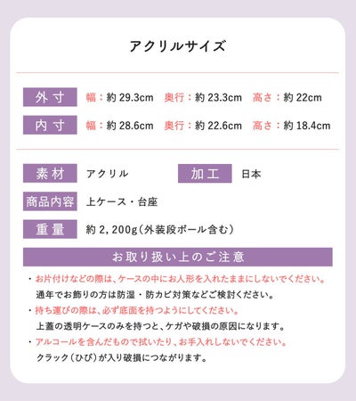 アクリルケースサイズ(cm):外寸-幅約29.3/奥行23.3/高さ22