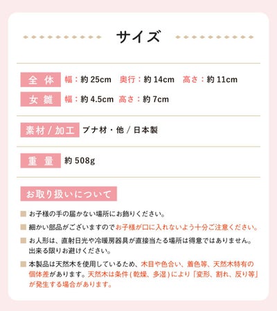 雛人形サイズ(cm):全体-幅約25/奥行14/高さ11・女雛-幅約4.5/高さ7