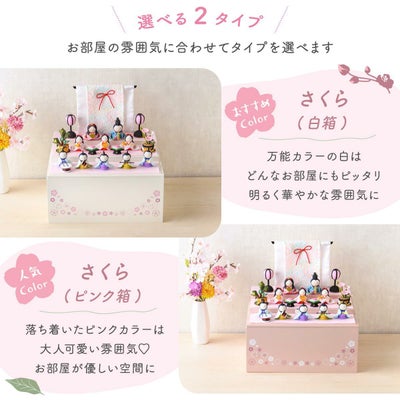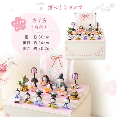 雛人形 コンパクト かわいい ケース飾り 三段飾り さくら 十人飾り リュウコドウ ※白箱2月下旬発送予定