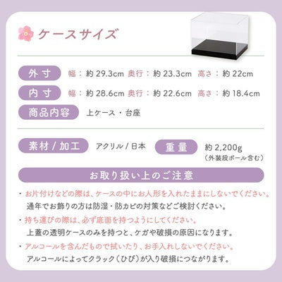 アクリルケースサイズ(cm):Fタイプ-幅約29.3/奥行23.3/高さ22