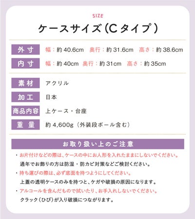 雛人形サイズ(cm):本体(雛人形のみ)-幅約30/奥行24/高さ30.7、女雛-幅約7/高さ5