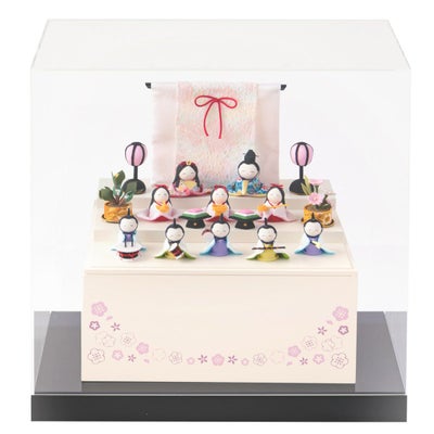 おしゃれな収納ひな人形 ちりめん 40cmスペースで飾れる! 龍虎堂 雛人形 コンパクト かわいい 三段飾り ケース飾り さくら 十人飾り リュウコドウ ※白箱2月下旬発送予定