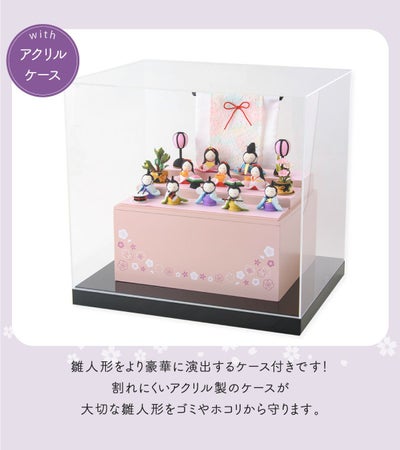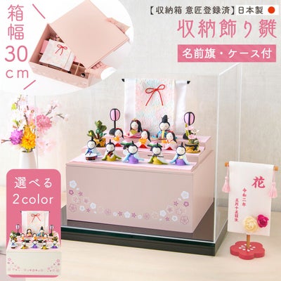 ◆ 雛人形 収納飾り 木製収納ケース 人形 ひな人形 雛人形 ちりめん 桃の節句 お雛様 ひな祭り お雛さま 初節句【収納飾り 三段 ちりめん さくら 名前旗付き 刺繍 アクリルケース 雛 オリジナル】◆