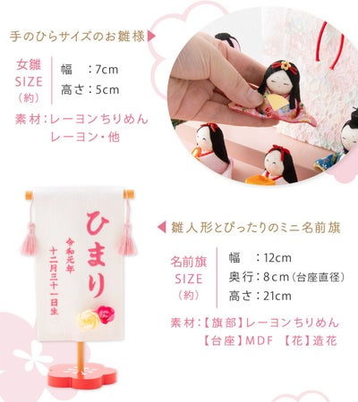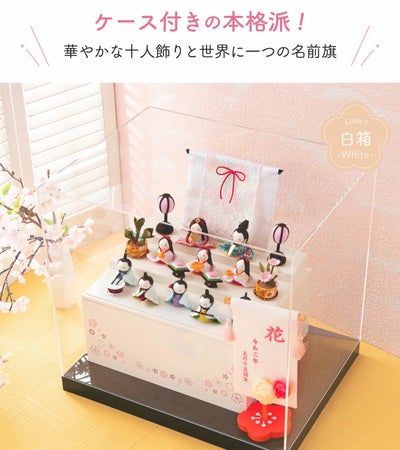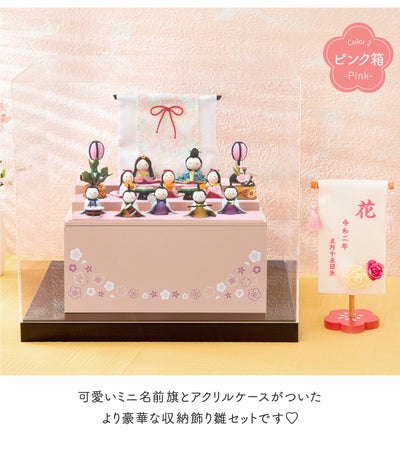 雛人形 コンパクト かわいい 三段飾り ケース飾り 名前旗 さくら 十人飾り リュウコドウ