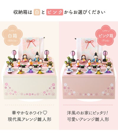 付属:お雛さま・お内裏さま・三人官女・五人囃子・雪洞・菱餅・几帳・台(収納箱)【意匠登録出願済】