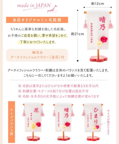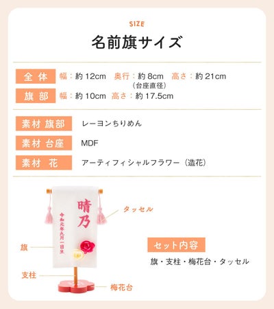 素材:(旗部)レーヨンちりめん・(台座)MDF・(花)アーティフィシャルフラワー(造花)