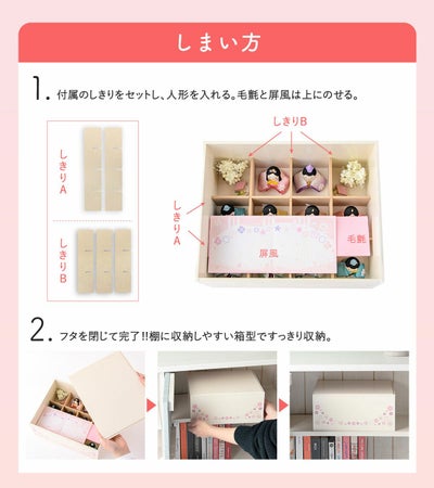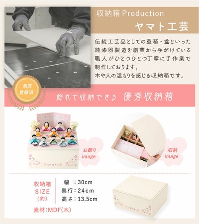 ※お人形に付属の保管箱は、厚手の紙製の箱となります。木製ではございません。ご了承くださいませ。