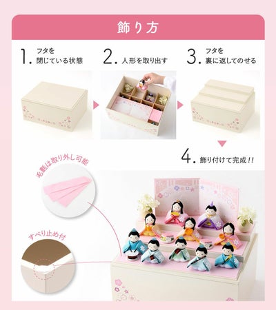古の習わしと現代の雛祭りを融合し、お子さまのお部屋にお飾りいただく、季節を演出するインテリア、お店などのディスプレイや恋人への沢山の思いを込めたプレゼントなど、多くのシーンで大活躍します。