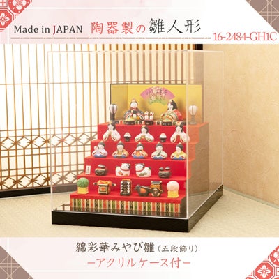 ◆【 雛人形】 雛人形 コンパクト おしゃれ 五段飾り 十人飾り アクリルケース【錦彩華みやび雛(五段飾り)】 立札 薬師窯 ひな人形 お雛様 ひなまつり◆