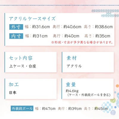 ※お人形に付属の保管箱は、厚手の紙製の箱となります。木製ではございません。ご了承くださいませ。