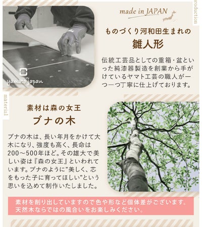 古の習わしと現代の雛祭りを融合し、お子さまのお部屋にお飾りいただく、季節を演出するインテリア、お店などのディスプレイや恋人への沢山の思いを込めたプレゼントなど、多くのシーンで大活躍します。