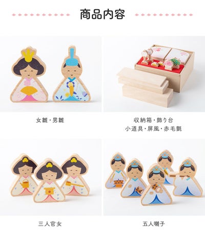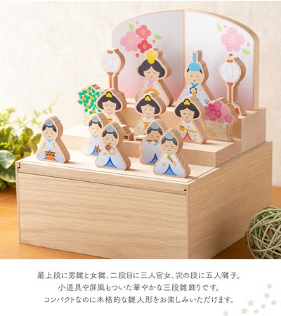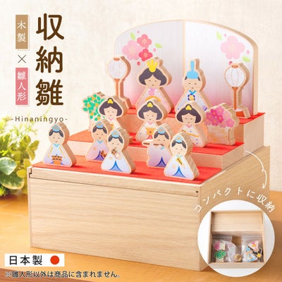 ◆【新作 2024年】雛人形 コンパクト お雛様 ひな人形 おしゃれ 木製 木製雛人形 収納飾り かわいい 三段飾り 十人飾り 三人官女 五人囃子 木目 御祝 ギフト 雛祭り コンパクト収納 えま雛◆