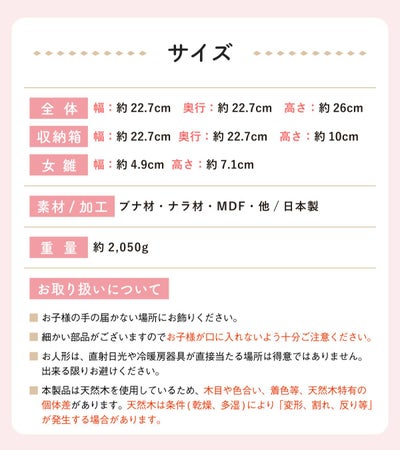 雛人形サイズ(cm):全体-幅約22.7/奥行22.7/高さ26・女雛-幅約4.9/高さ7.1