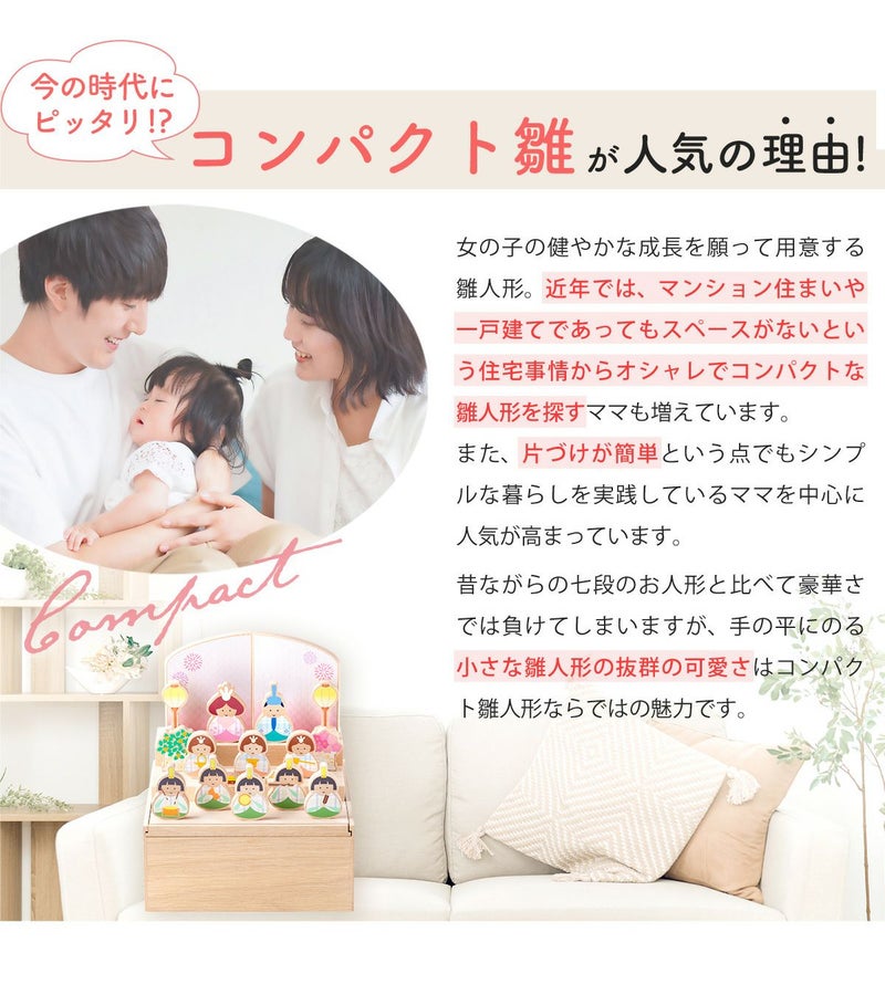 他の画像を見る 定価 ¥ 34,800 のところ 販売価格 ¥ 34,800 税込 詳細を見る お気に入りに登録する 送料無料 10%OFFクーポン 当店だけのオリジナルデザイン 木製の収納飾り台付き 初節句 【新作 2024年】雛人形 コンパクト お雛様 ひな人形 おしゃれ 木製 木製雛人形 十人飾り 収納飾り りん雛 在庫切れ