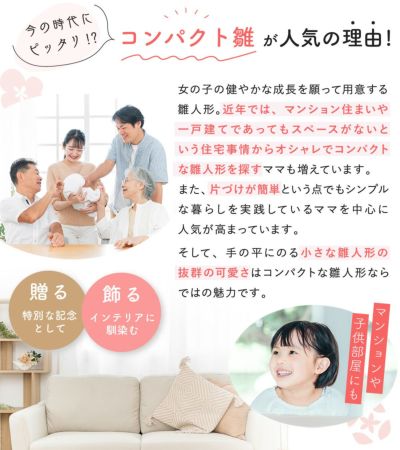古の習わしと現代の雛祭りを融合し、お子さまのお部屋にお飾りいただく、季節を演出するインテリア、お店などのディスプレイや恋人への沢山の思いを込めたプレゼントなど、多くのシーンで大活躍します。