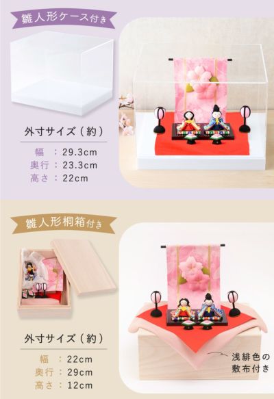 雛人形サイズ(cm):全体-幅約31/奥行31/高さ17.5・女雛-幅約6.5/高さ4.5