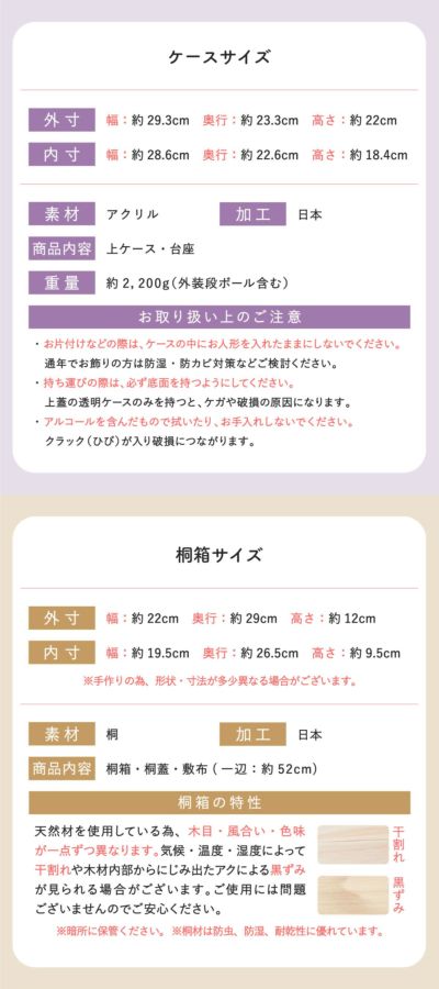 ※お人形に付属の保管箱は、厚手の紙製の箱となります。木製ではございません。ご了承くださいませ。
