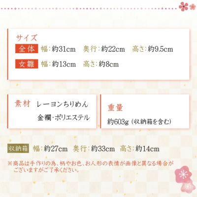 女の子のお祝い「初節句 桃の節句 ひな祭り」おんなの子の健やかな成長を願ってお雛様を贈ります。収納ケースに自分で片づけをし、かわいいお雛様を大切にする心も育みます。プレゼント、ギフト、ディスプレイやインテリアにも最適なコンパクトサイズでマンションや玄関飾りとしても人気の節句飾りです。