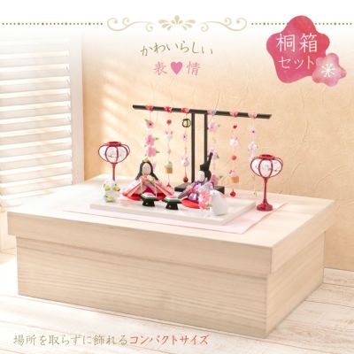 女の子のお祝い「初節句 桃の節句 ひな祭り」おんなの子の健やかな成長を願ってお雛様を贈ります。収納ケースに自分で片づけをし、かわいいお雛様を大切にする心も育みます。プレゼント、ギフト、ディスプレイやインテリアにも最適なコンパクトサイズでマンションや玄関飾りとしても人気の節句飾りです。