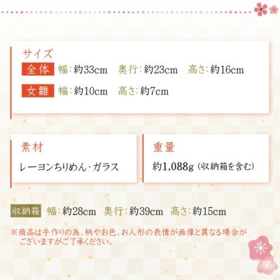 雛人形サイズ(cm):全体-幅約33/奥行23/高さ16・女雛-幅約10/高さ7