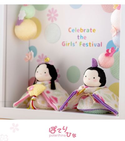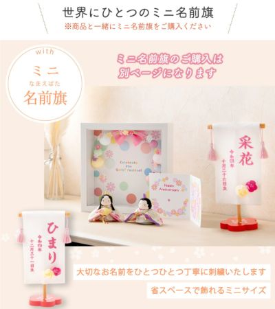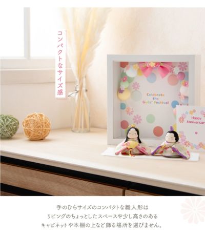 ◆雛人形 ひな人形 おひなさま お雛様 レビュー投稿名入れ立札 かわいい コンパクト おしゃれ【ぽてりひな 2人(麻の葉)フレーム花飾り 】◆