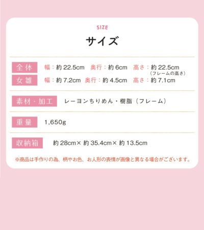 ※商品は手作りのため、お着物の柄やお色、お人形の表情が画像と異なる場合がございます。