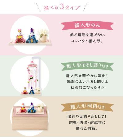 古の習わしと現代の雛祭りを融合し、お子さまのお部屋にお飾りいただく、季節を演出するインテリア、お店などのディスプレイや恋人への沢山の思いを込めたプレゼントなど、多くのシーンで大活躍します。
