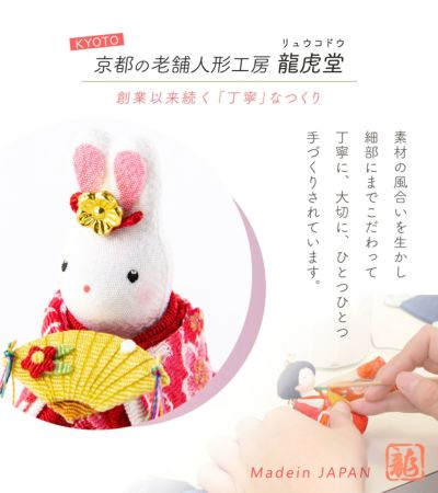 ◆雛人形 コンパクト モダン おしゃれ かわいい お雛様 ミニ サイズ ひな人形 新作 レビュー投稿名入れ立札 【白いお花と こうさぎの 】吊るし飾り 桐箱 玄関飾り ちりめん 京都老舗 龍虎堂 リュウコドウ 人気 インテリア 送料無料(沖縄除く) レビュー投稿 おまけ 名前 木札◆