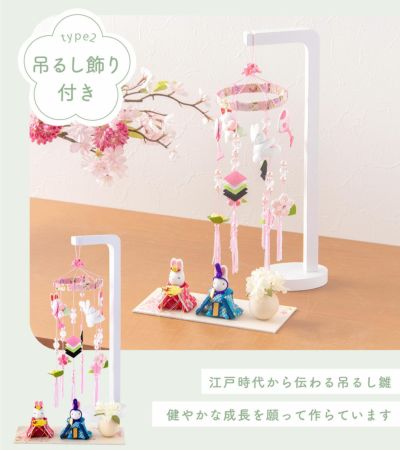 雛人形 新作 2026年 コンパクト かわいい 白いお花と こうさぎのお雛様 親王飾り 吊るし飾り 桐箱 リュウコドウ