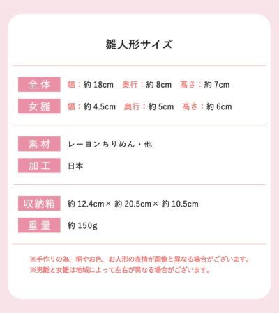 雛人形サイズ(cm):全体-幅18×奥行8×高さ7cm
