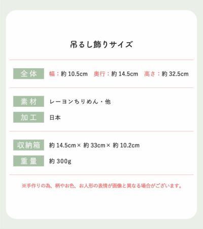 吊るし飾りサイズ(cm):全体-幅10.5×奥行14.5×高さ32.5cm