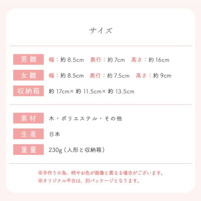 雛人形サイズ(cm):男雛-幅約8.5/高さ16,女雛-幅約8.5/高さ9