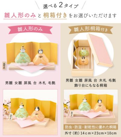 ◆雛人形 コンパクト モダン 新作 2025年 おしゃれ かわいい お雛様 ミニ サイズ ひな人形 親王飾り 彩絵華錦雛(香色) 桐箱 陶器 陶磁器 台座 立札 薬師窯 ひなまつり 人気 インテリア レビュー投稿 おまけ 名前 木札◆