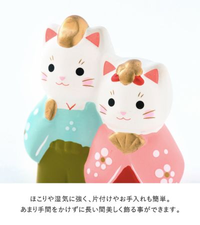 ◆雛人形 コンパクト モダン 新作 2025年 おしゃれ かわいい お雛様 ミニ サイズ ひな人形 親王飾り 錦彩睦ねこ雛 陶器 陶磁器 薬師窯 ひなまつり 人気◆
