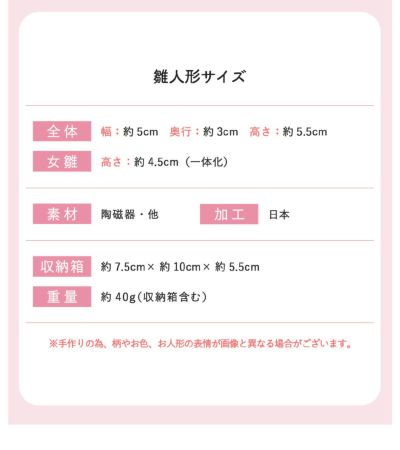 雛人形サイズ(cm):全体-幅約5/奥行3/高さ5.5・人形(一体型)-高さ4.5