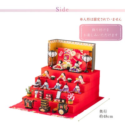 付属:人形・雪洞・菱餅・桜橘・小道具・雛ザブトン・台座・几帳・屏風・モウセン・立て札