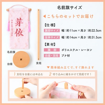 【仕様】旗部サイズ:約11cmX約22.5cm 全体サイズ:高さ約31.5cm、幅約14cm、奥行:10cm(台座直径)