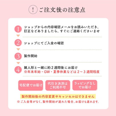 ※納期をお確かめの上、お届け希望日に間に合うようご注文とご入金をお済ませください。
