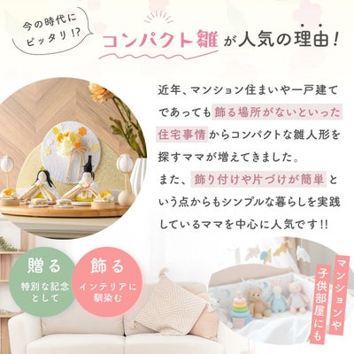 古の習わしと現代の雛祭りを融合し、お子さまのお部屋にお飾りいただく、季節を演出するインテリア、お店などのディスプレイや恋人への沢山の思いを込めたプレゼントなど、多くのシーンで大活躍します。