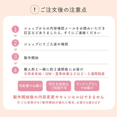 ※納期をお確かめの上、お届け希望日に間に合うようご注文とご入金をお済ませください。