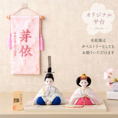 ◆雛人形 コンパクト モダン 白 おしゃれ 木目込み 木目込み雛人形名前旗セット 西陣 お雛様 2025年 インテリア かわいい ひな人形 ミニ サイズ 飾り台 春日雛 親王飾り 名前旗 西陣織 京都西陣織 刺繍名前旗 命名旗 命名書ひな祭り ひなまつり 初節句 贈り物◆