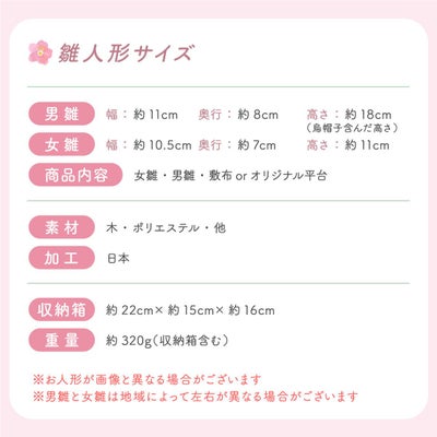 雛人形サイズ(cm):男雛-幅約11/高さ12,女雛-幅約10.5/高さ11